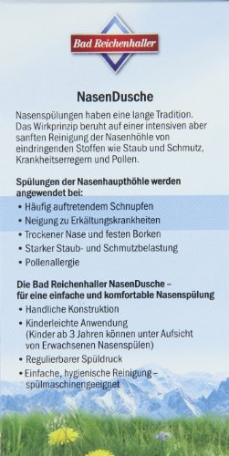 Bad Reichhaller Nasendusche, Nasenspülungen werden in fernöstlichen Kulturkreisen seit Jahrhunderten traditionell angewendet. Das Wirkprinzip beruht auf der intensiven und gründlichen Reinigung der Nase von Staub, Schmutz, Krankheitserregern und Pollen. Nasenspülungen sind besonders effektiv zur Vorbeugung von Erkältungskrankheiten und zur Reinigung der Nase in der Heuschnupfenzeit.
