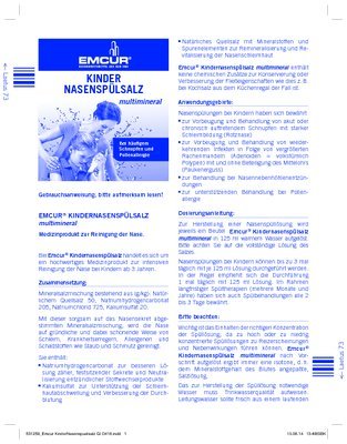 Emcur Kinder Nasenspülsalz multimineral reinigt die Nase nicht nur wie z. B. herkömmliches Koch- oder Meersalz, sondern enthält zusätzliche Mineralien mit wohltuenden Funktionen: