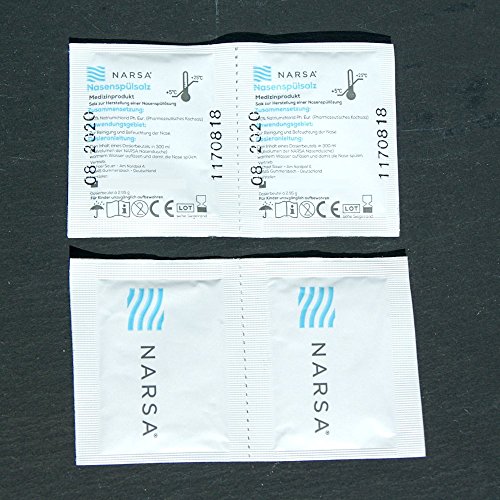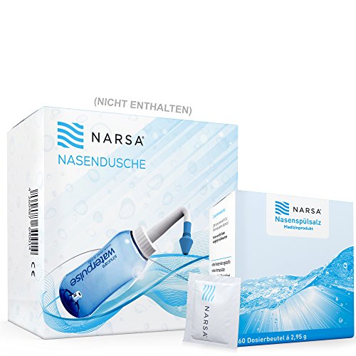 Für eine optimale Anwendung, empfehlen wir den Einsatz der NARSA Nasendusche, da der Beutelinhalt mit 2,95 g Salz exakt auf das Füllvolumen der NARSA Nasendusche abgestimmt ist.